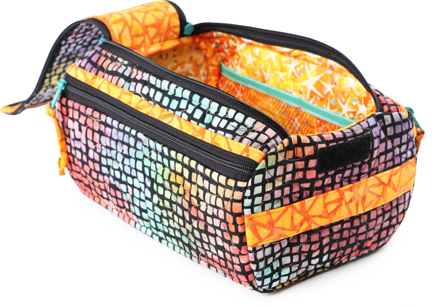 This structured, soft-sided bag is perfect for sewing notions, travel items, or gifting. You’ll learn helpful bag-making techniques like working with foam, adding pockets, and installing a secure zipper.