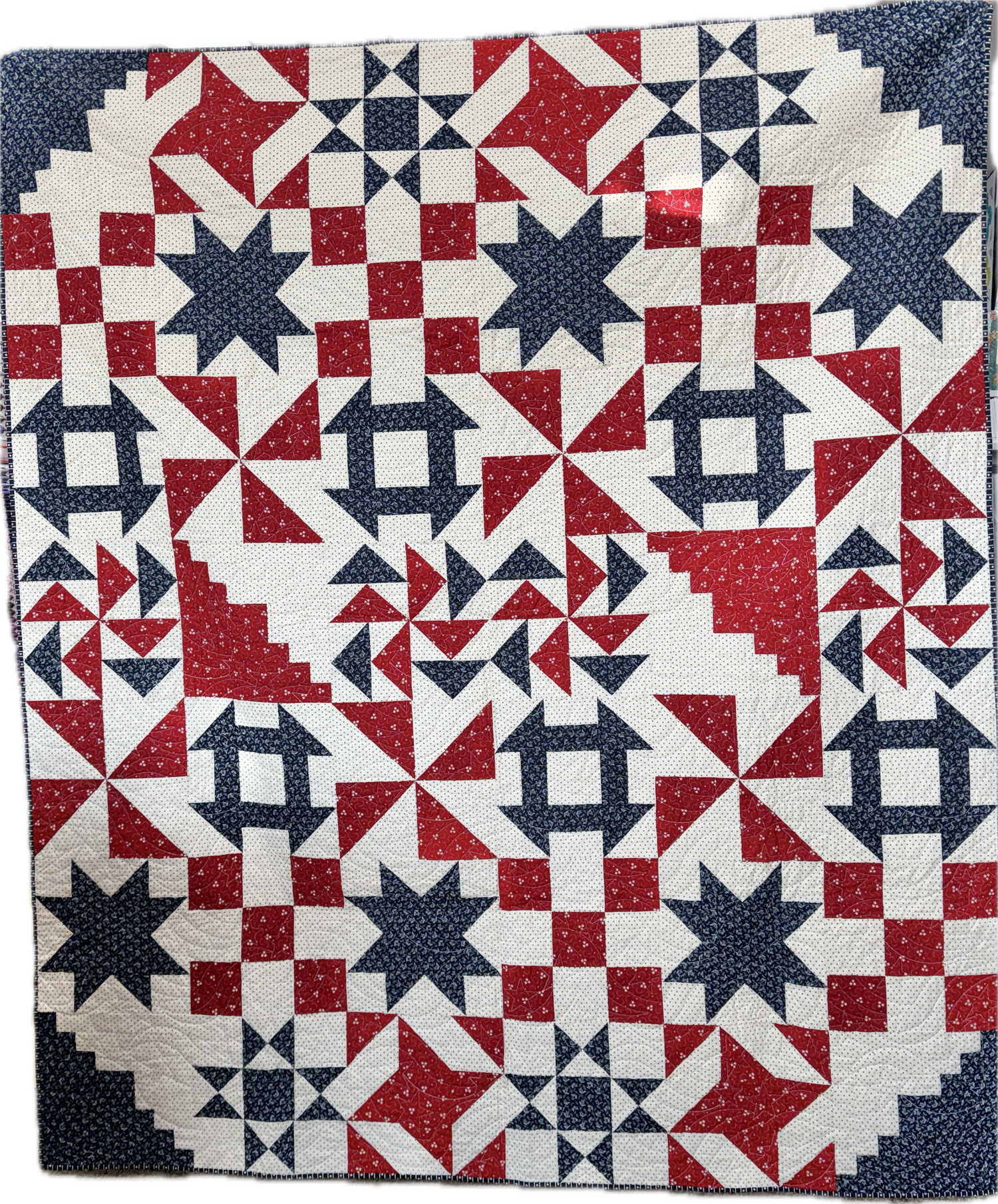 This is a beginning paper piecing class. It is an all day class. We will not finish the entire quilt in class but you will get a good understanding of how to paper piece the units needed for this quilt.