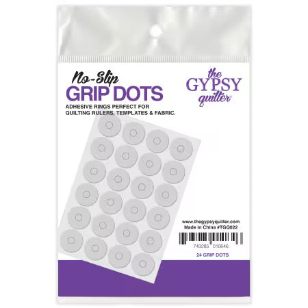 Ruler slipping got you down? Not anymore! Simply apply The Gypsy Quilter Ruler Dots to the underside of your ruler- and slip no more! Contains 24 large grips and 24 small grips per package.